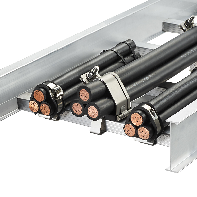 ในพื้นที่ที่มีการสั่นสะเทือนสูง สายเคเบิลไฟฟ้าแรงสูงและแรงต่ำต้องการมากกว่าที่รัดสายธรรมดา อุปกรณ์ยึดสายเคเบิล (Cable Cleats) ถูกออกแบบมาโดยเฉพาะเพื่อยึดและ "ควบคุม" สายเคเบิลให้อยู่กับที่ แม้ในขณะที่เกิดไฟฟ้าลัดวงจร (Short Circuit Fault) เพื่อจำกัดความเสียหายต่อชีวิตและทรัพย์สิน (Minimize disruption and damage to personnel and property) - การป้องกันระยะยาวด้วยวัสดุที่เหนือกว่า (Wire Routing and Protection)